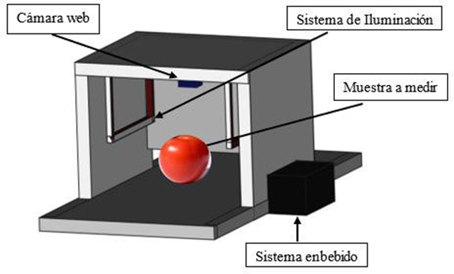 Once the construction of the electronic system and the programming of the VAS hardware measurement system in its structural form were completed, a compartment was built for image acquisition, which functions as the main structure of the equipment, supports the tomato sample to be analyzed and the other components, as can be seen in figure 1.